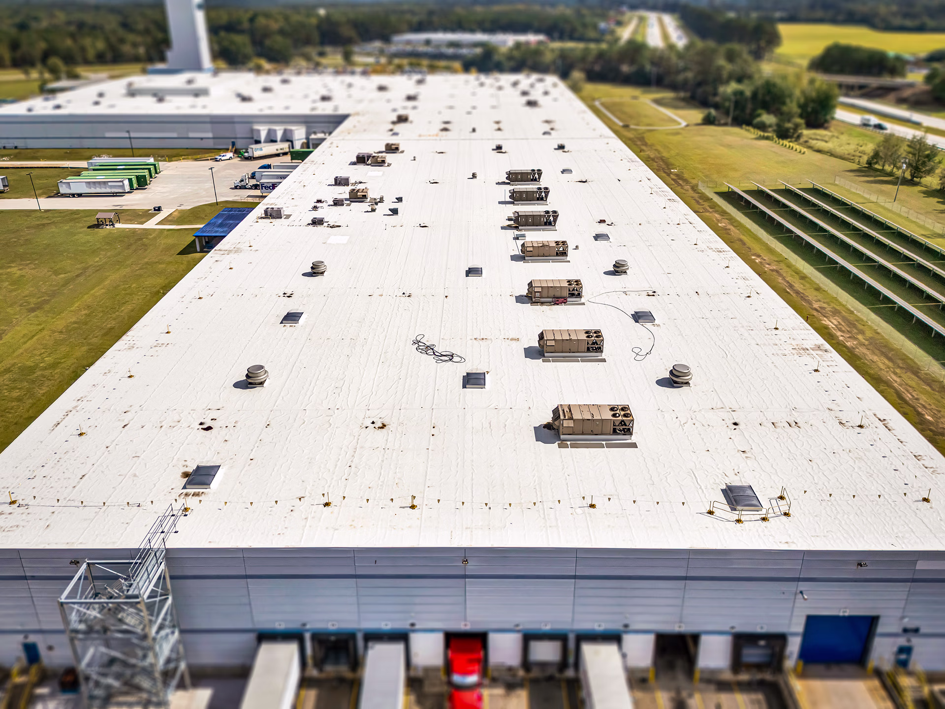 This commercial and industrial reroofing project in Florence, South Carolina encompassed 422,120 square feet of roofing area. The project featured an upgrade to a GAF 80 mil TPO roof system, providing enhanced durability and energy efficiency for the facility.